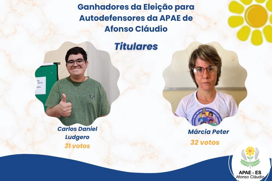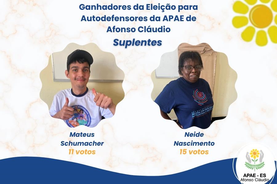 A APAE de Afonso Cláudio parabeniza os novos Autodefensores eleitos.