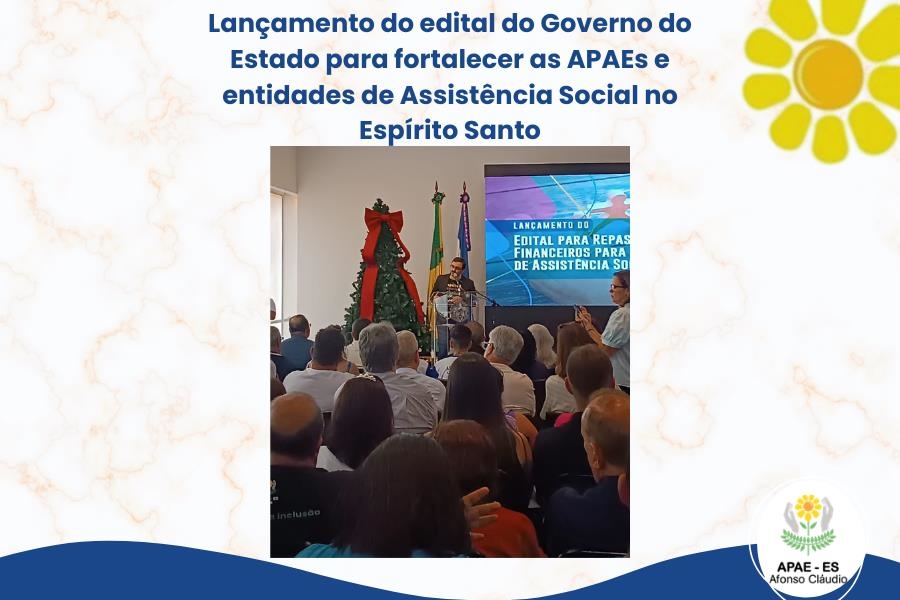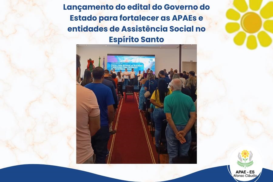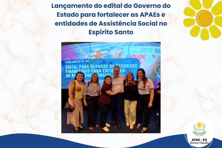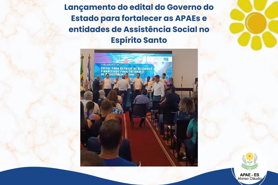 Essa semana celebramos o lançamento do edital do Governo do Estado que vai destinar quase R$ 10 milhões para fortalecer as Apaes e entidades de Assistência Social em todo o Espírito Santo.