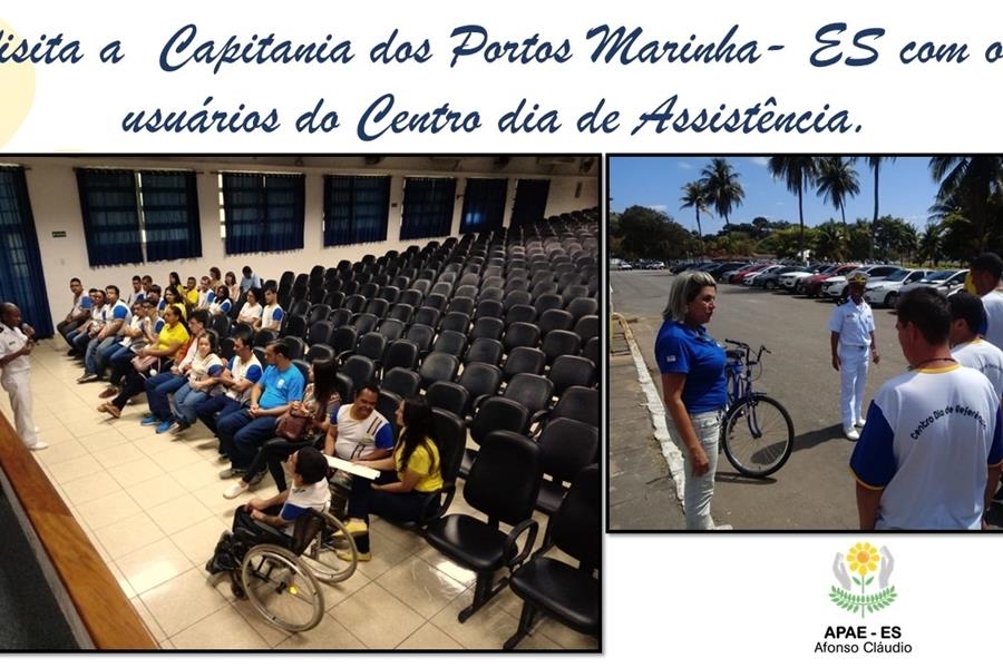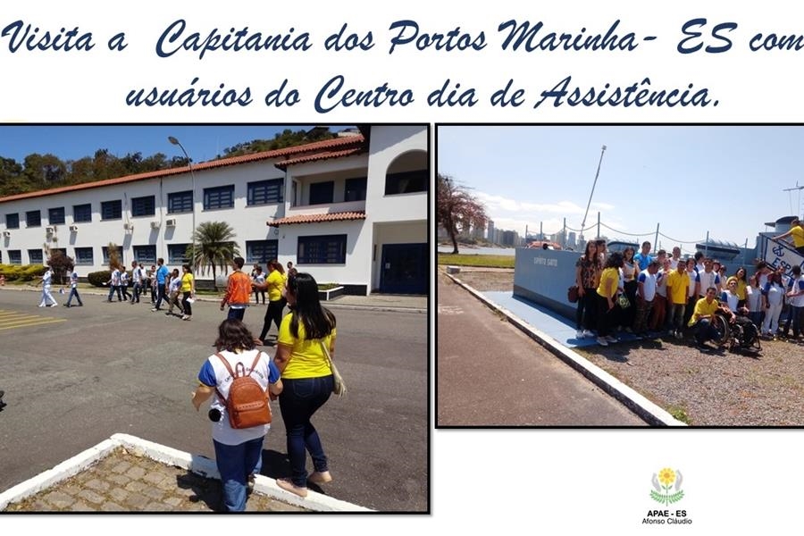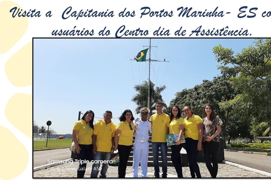 No dia 13 de Setembro os usuários do Centro Dia de Assistência, visitaram as instalações da Capitania dos Portos Marinha do Brasil no Espirito Santo, localizada na Enseada do Suá, Vitória - ES. A visita aconteceu em comemoração ao Dia da Marinha no dia 11 de Junho.Os usuários participaram de Palestras, e visitam a parte interna da Marinha.