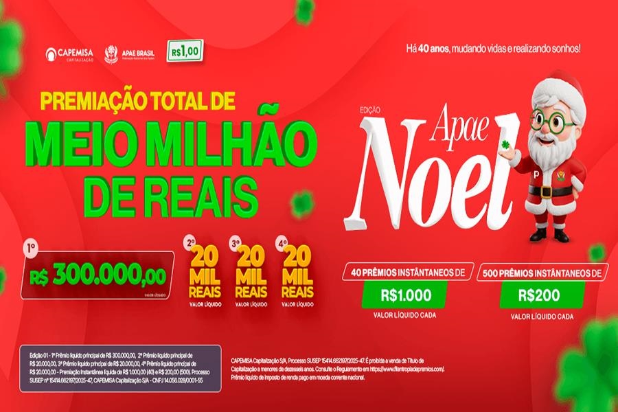 Com apenas R$ 1,00, você contribui diretamente para o trabalho da APAE de Iúna, ajudando a promover inclusão, amor e oportunidades. Além de fazer o bem, você ainda concorre a até meio milhão de reais em prêmios!