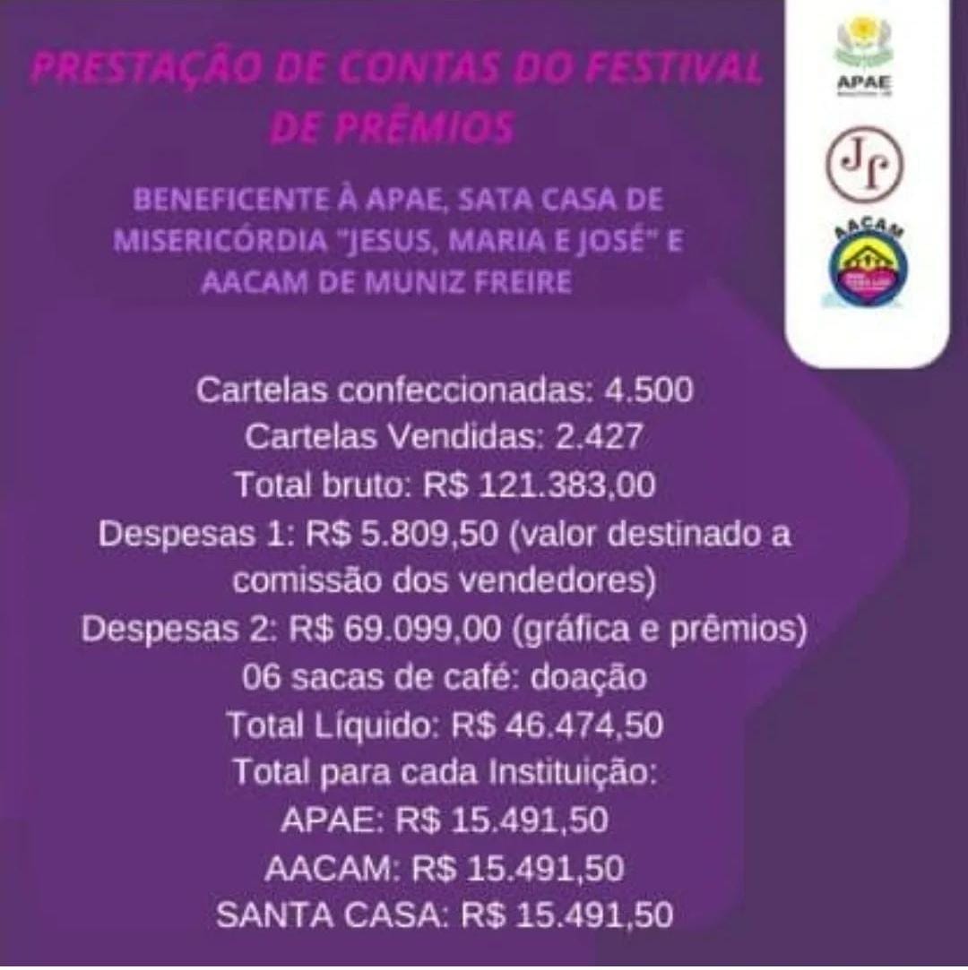 Prestação de Contas 2024 - Festival de Prêmios Beneficente